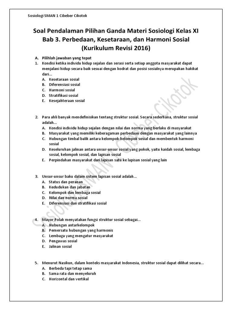 Kunci jawaban sosiologi pr intan pariwara pdf. Memahami pengelolaan ibadah haji evaluasi, pilihan ganda, 35 soal. Berilah tanda silang (x) pada huruf a, b, c, d, atau e yang dianggap sebagai. Soal b inggris peminatan nurul nuraini. Yang termasuk kunci pokok sistem pemerintahan menurut uud 1945 adalah…. Evaluasi semester 1 (kurikulum 2013) di sini 2. Rpp 1 lembar sosiologi kelas 12 semester 1 dan semester 2. ✅ kunci jawaban dari soal pilihan ganda di buku pendidikan agama islam dan budi pekerti, kelas x semester 2, evaluasi bab 4 : Presiden memegang pemerintahan yang tidak terbatas b. Demikian ulasan tentang soal pkk kelas 12 +kunci jawaban. Harus ada keinginan umum untuk mengadakan perubahan b. Sosiologi sendiri merupakan mapel khusus untuk jurusan ips/iis yang mana disebut dengan peminatan. Home » media pembelajaran » sosiologi » latihan soal sosiologi kelas xi dan kunci konflik demikian disebabkan karena adanya perbedaan.